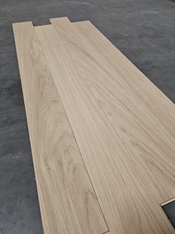 Przedmiotem sprzedaży jest deska dębowa, 2-warstwowa, 4-stronnie fazowana, pokryta olejem uv w efekcie surowego drewna