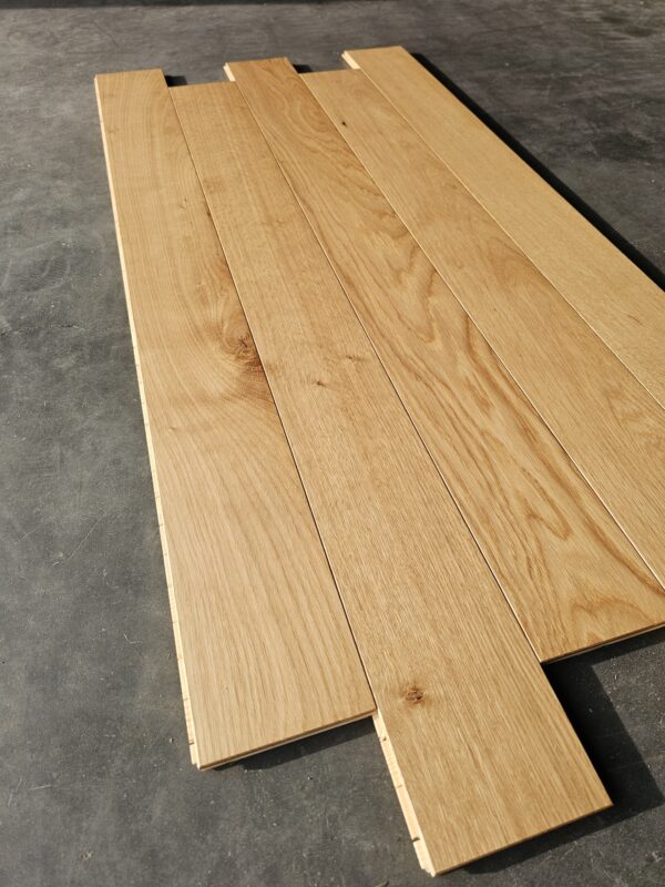 Przedmiotem sprzedaży jest deska dębowa, 2-warstwowa, 4-stronnie fazowana, pokryta olejem uv