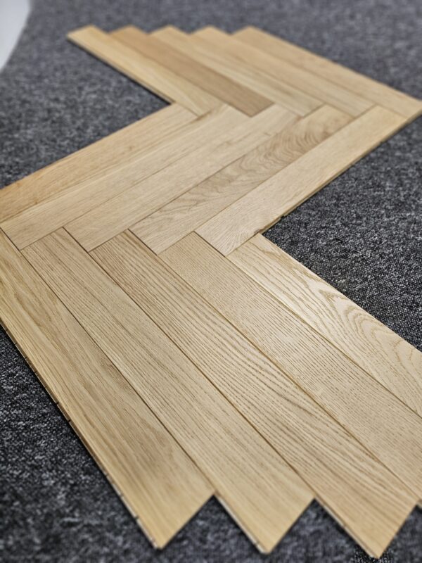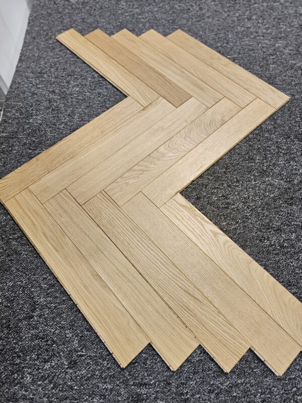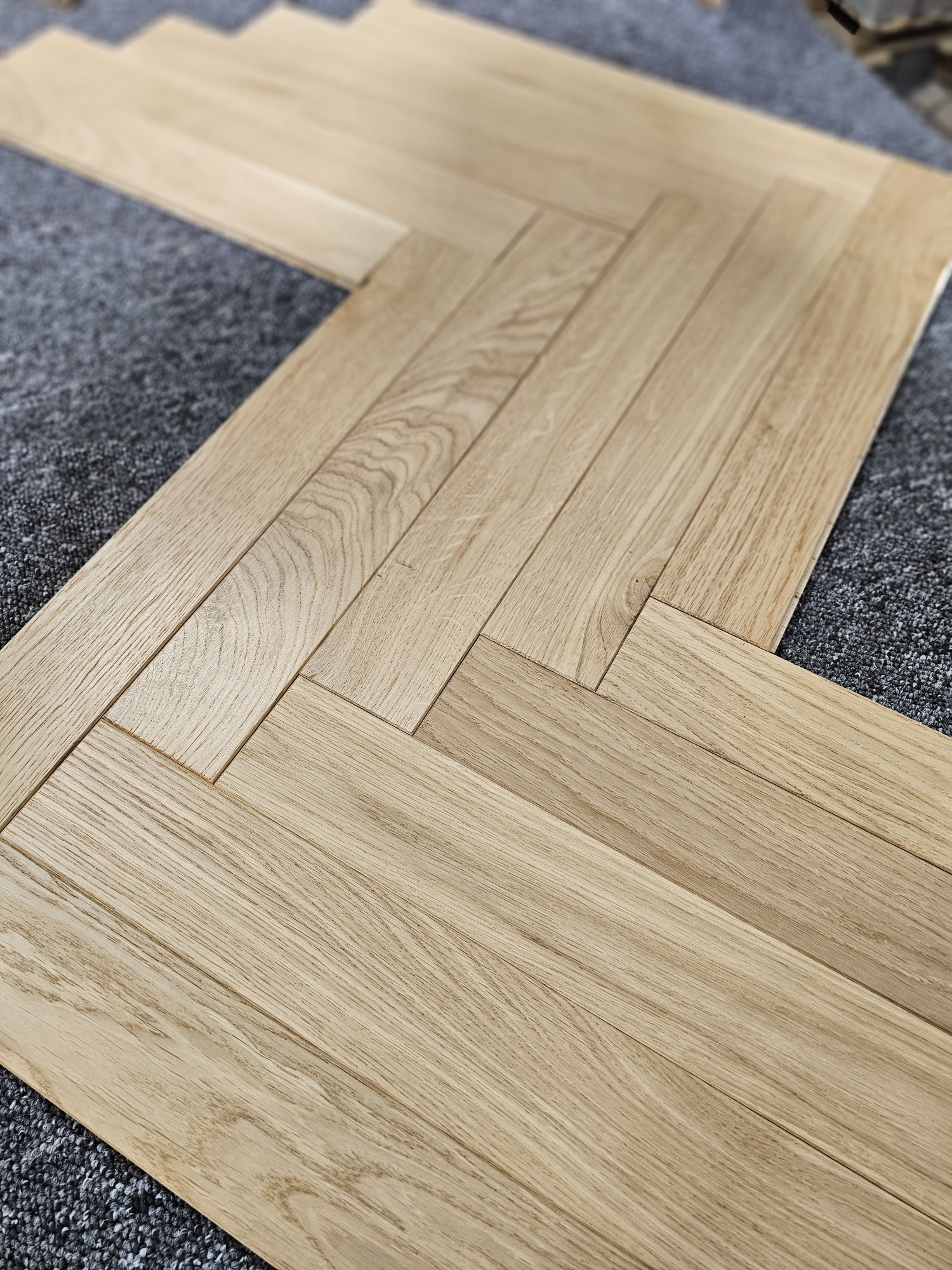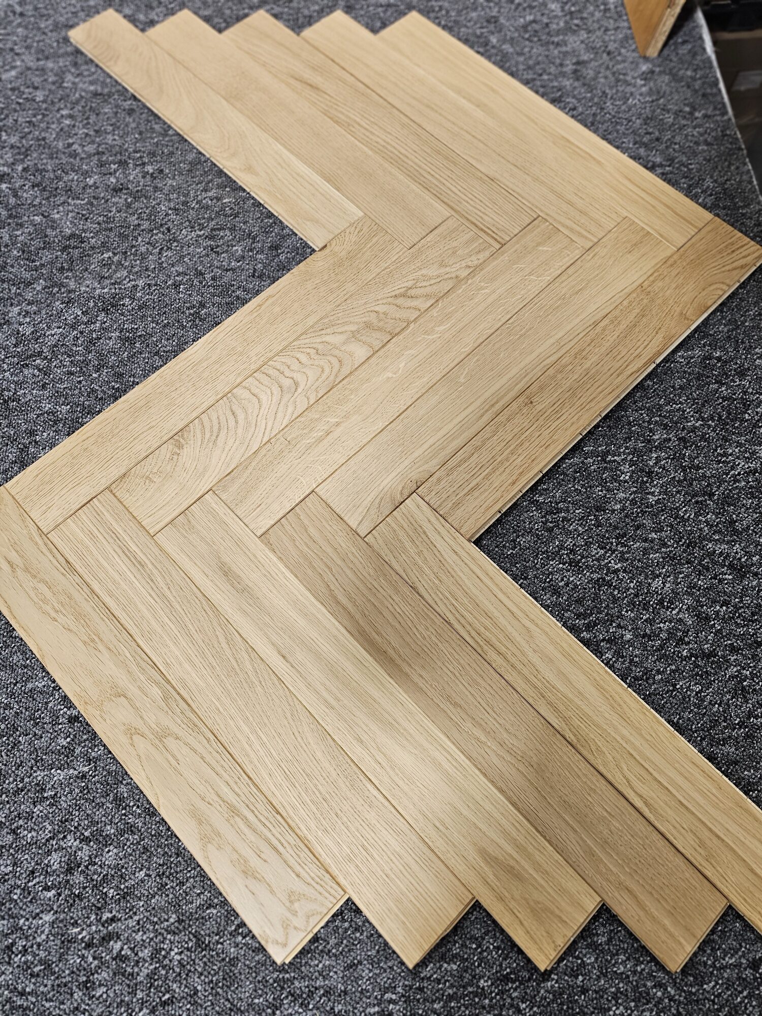 Przedmiotem sprzedaży jest parkiet dębowy (jodełka klasyczna), 2-warstwowy, lakierowany (lakier neutral). Produkt dedykowany na ogrzewanie podłogowe.
