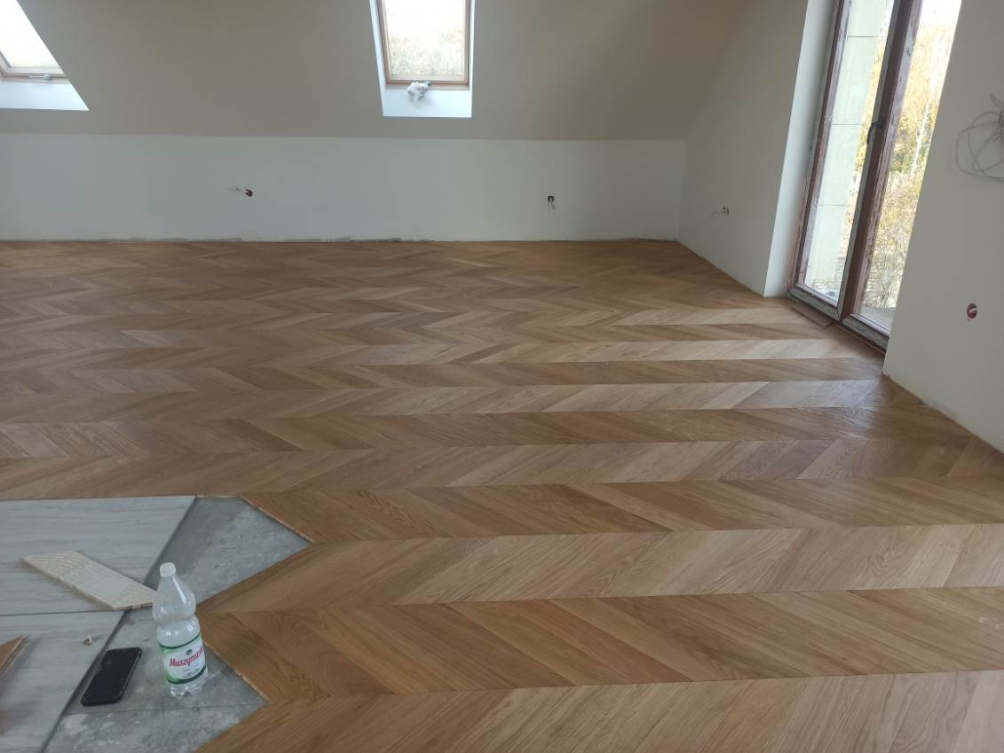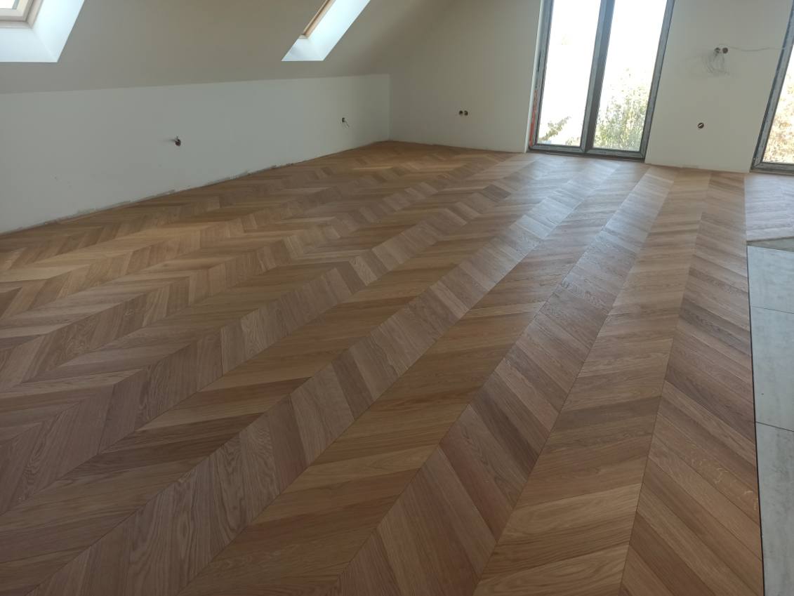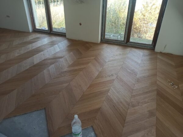Przedmiotem sprzedaży jest jodełka francuska, 2-warstwowa, 4-stronnie fazowana, pokryta olejowoskiem, szczotkowana