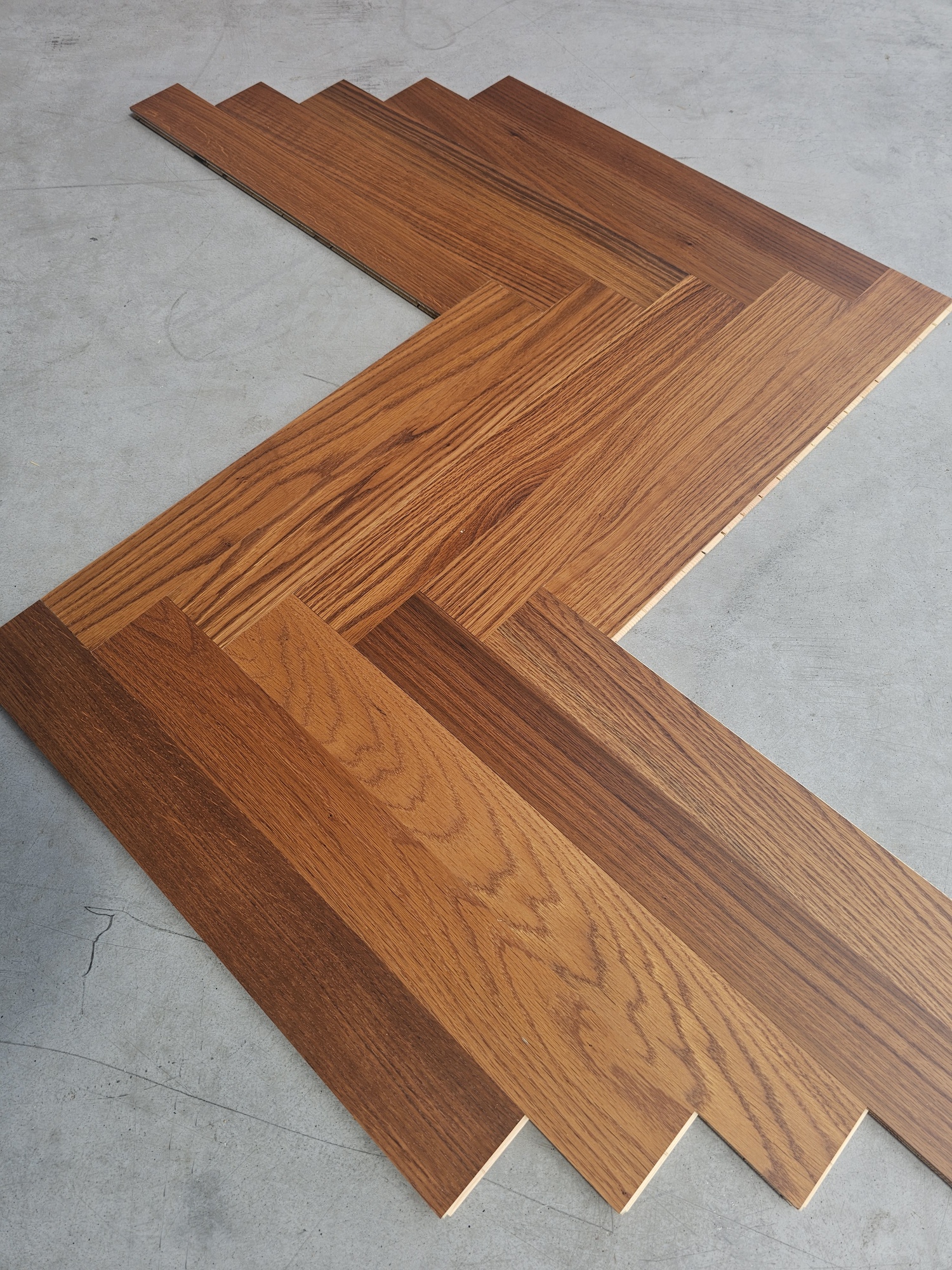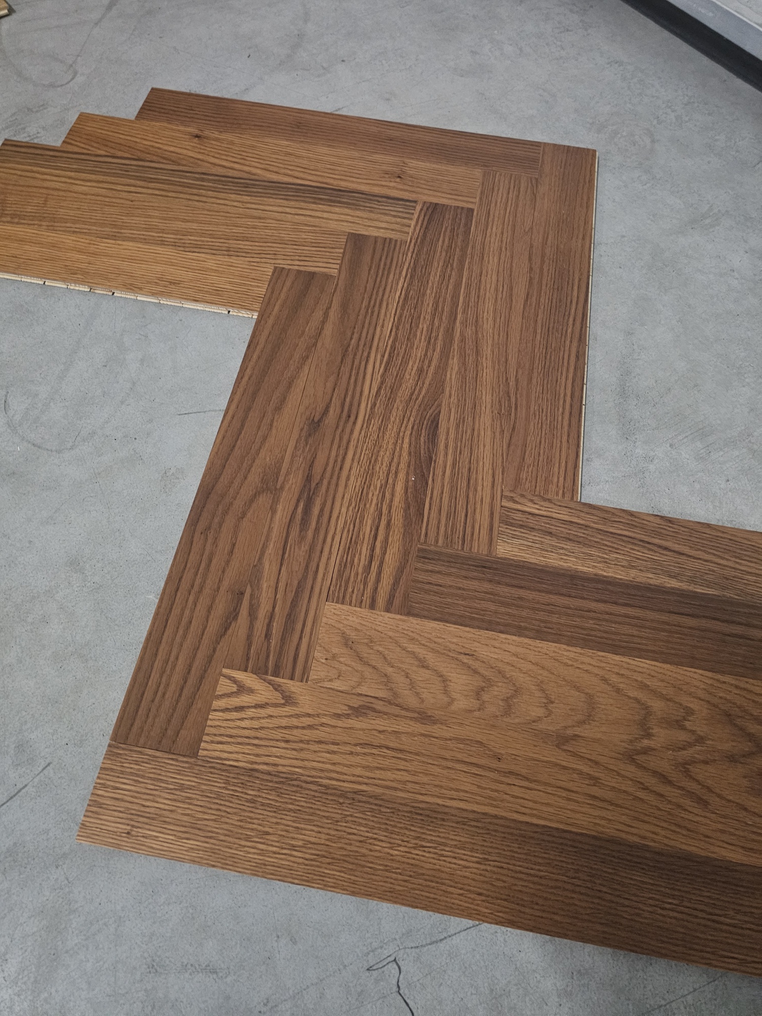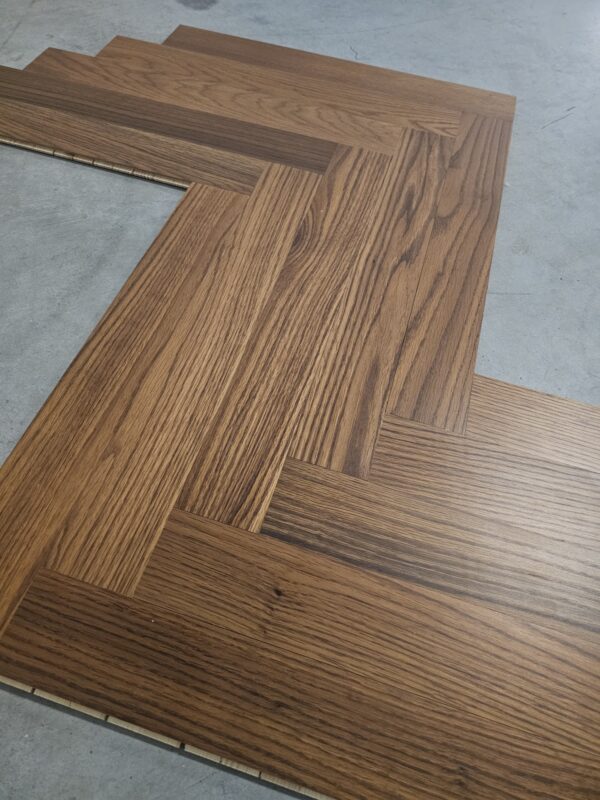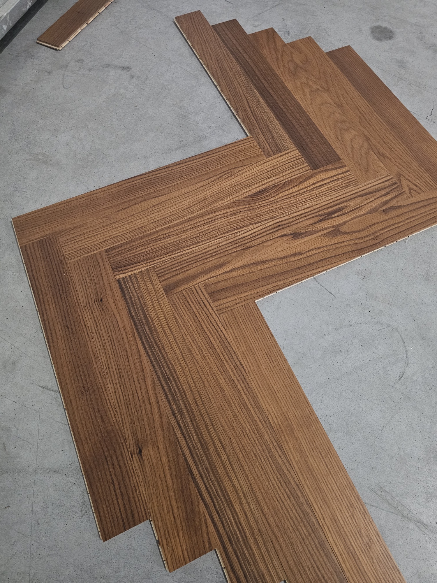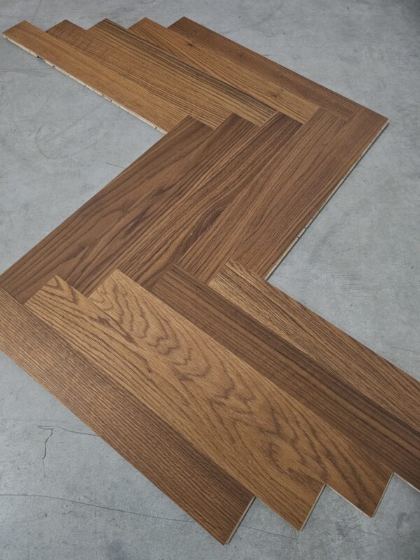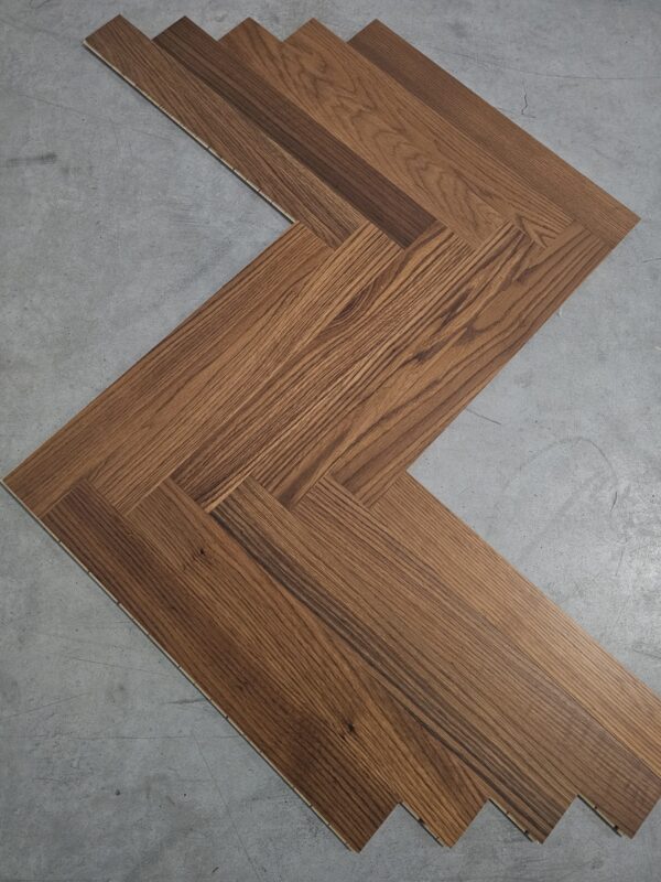 Przedmiotem sprzedaży jest parkiet z dębu czerwonego thermo (jodełka klasyczna), 2-warstwowy, lakierowany. Produkt dedykowany na ogrzewanie podłogowe.
