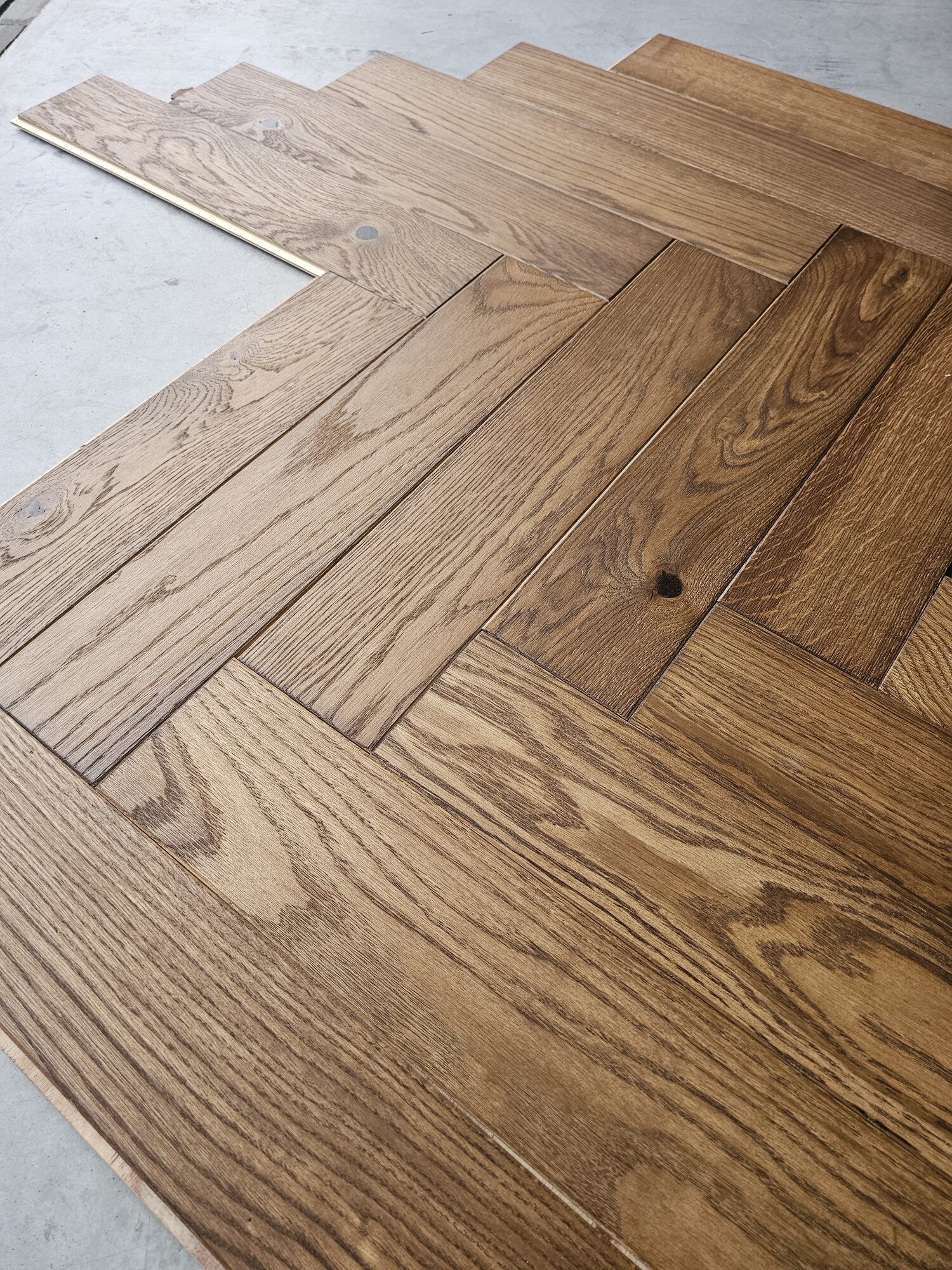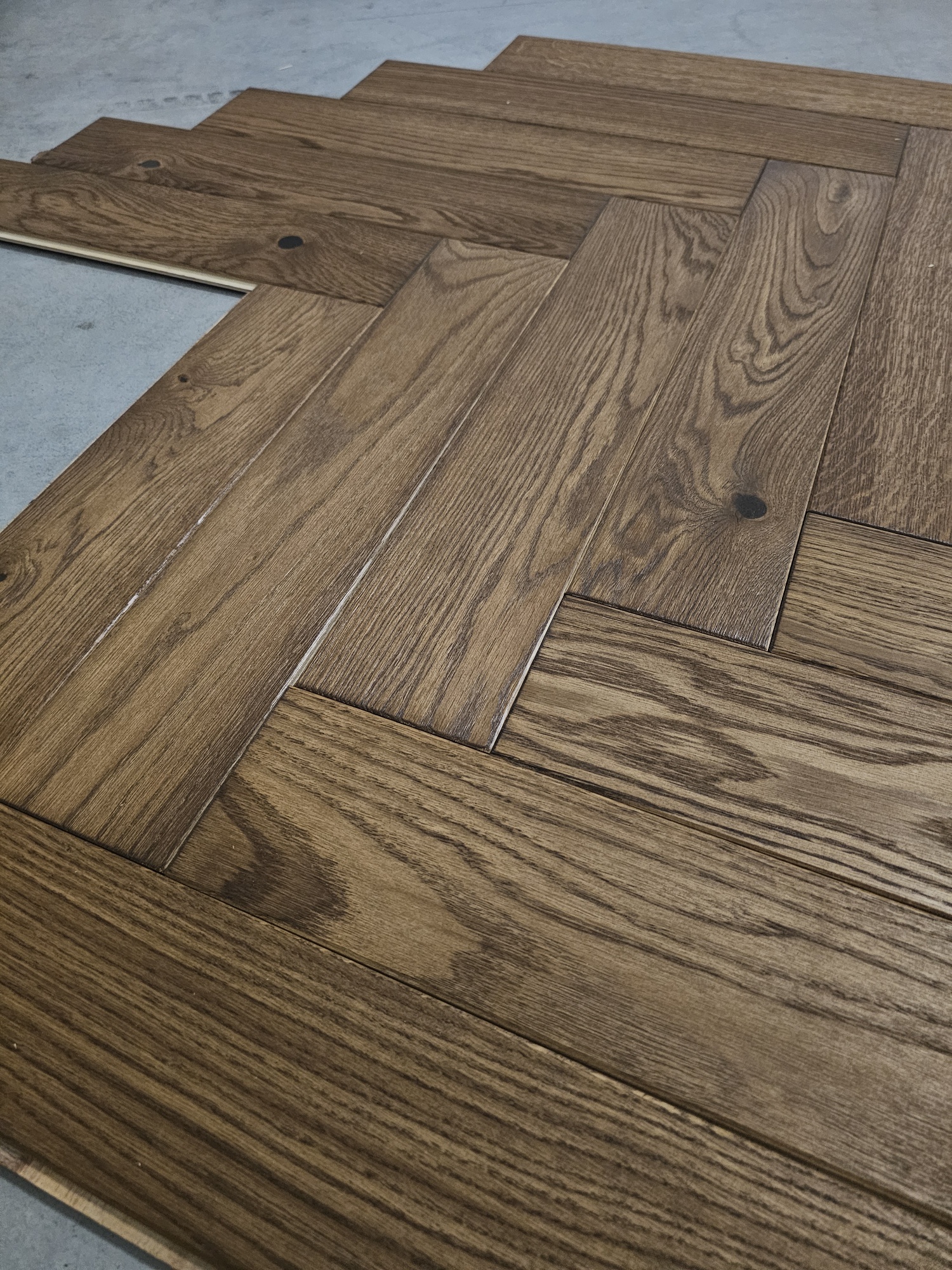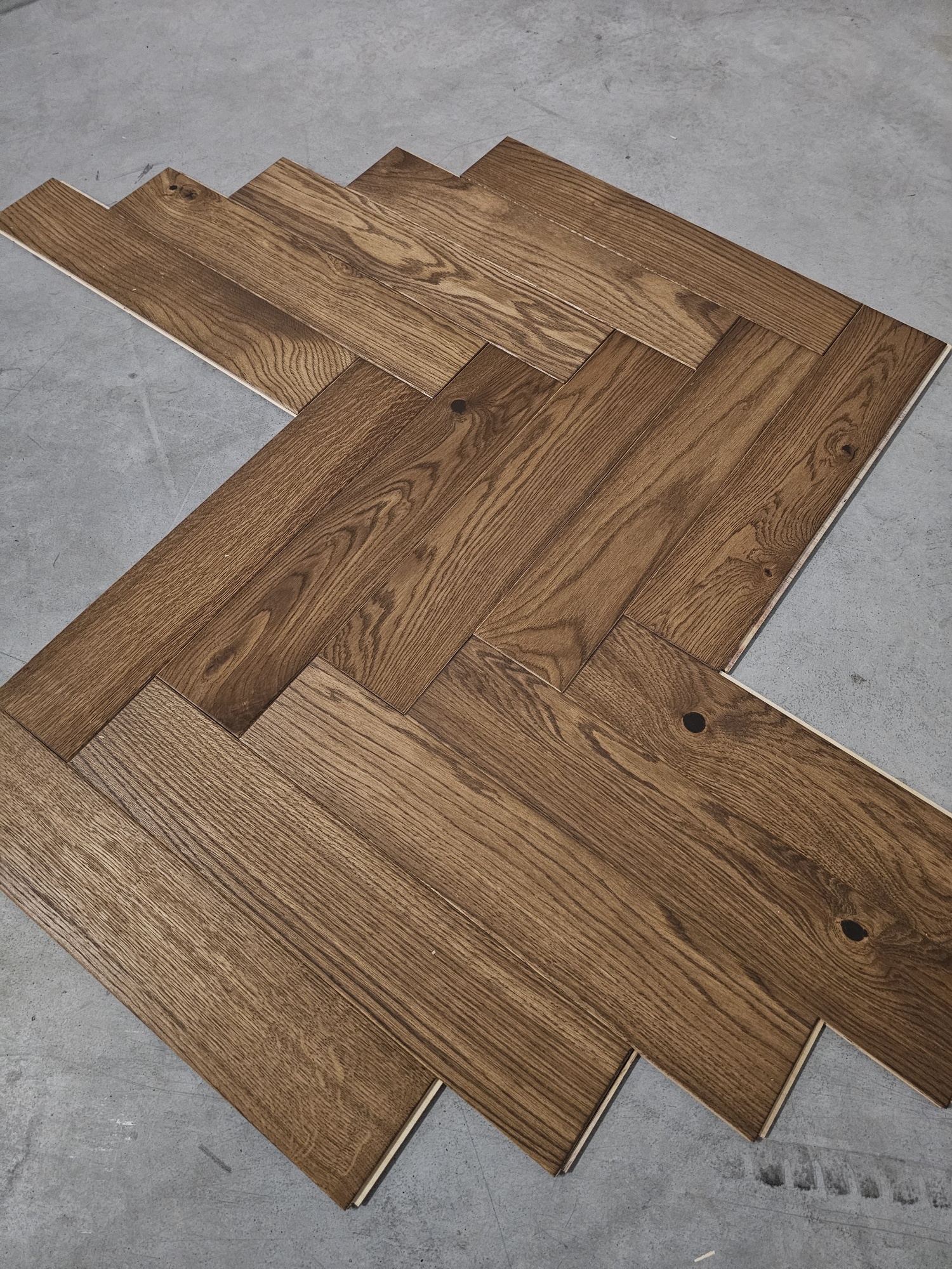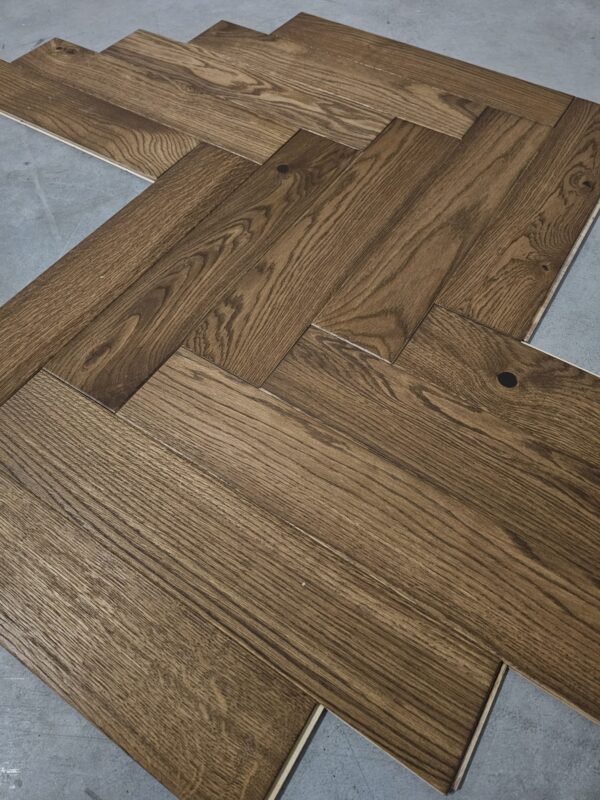 Jodełka klasyczna dąb faza szczotka brązowy olej 11x100x500 (280 m2)