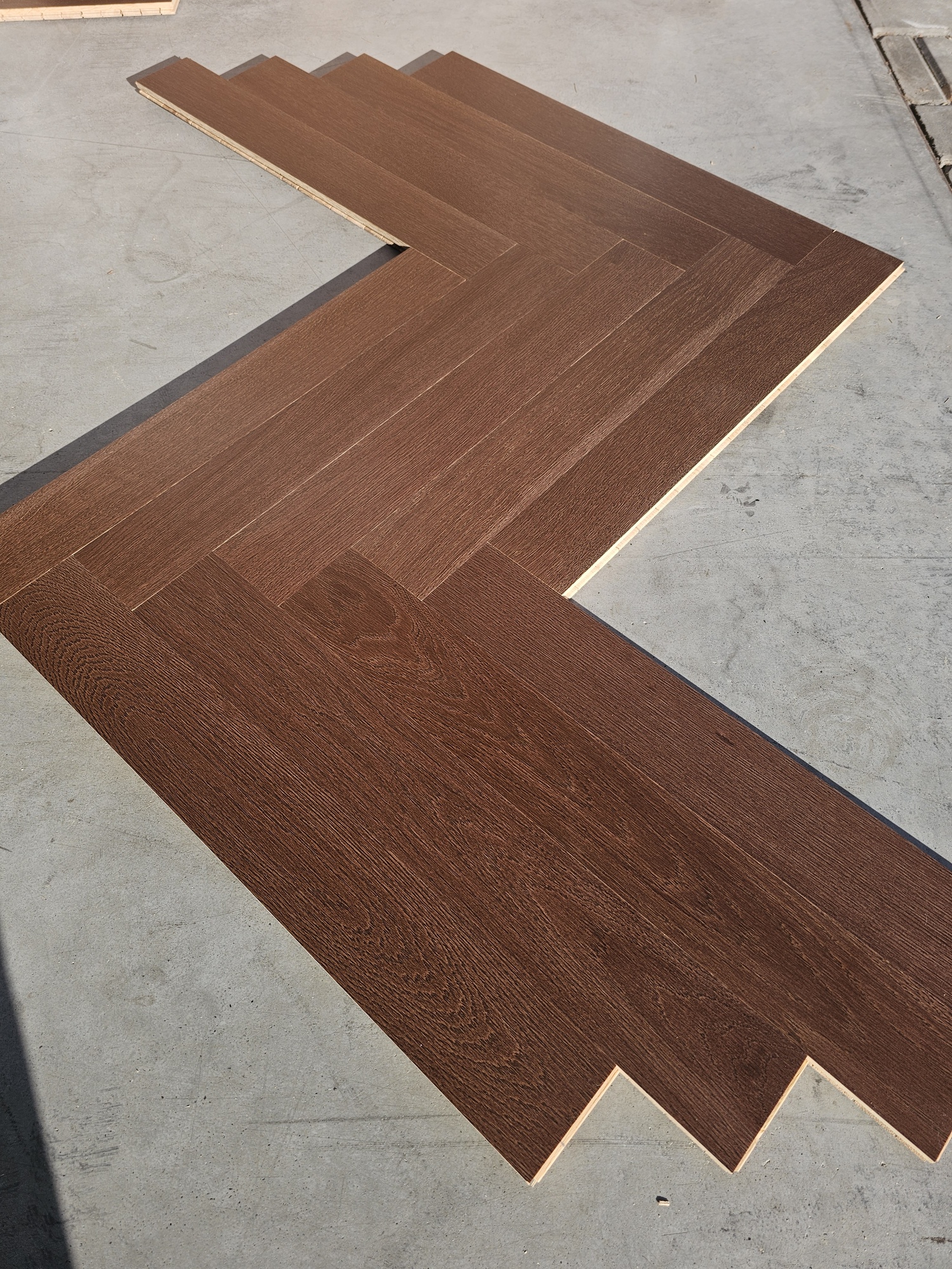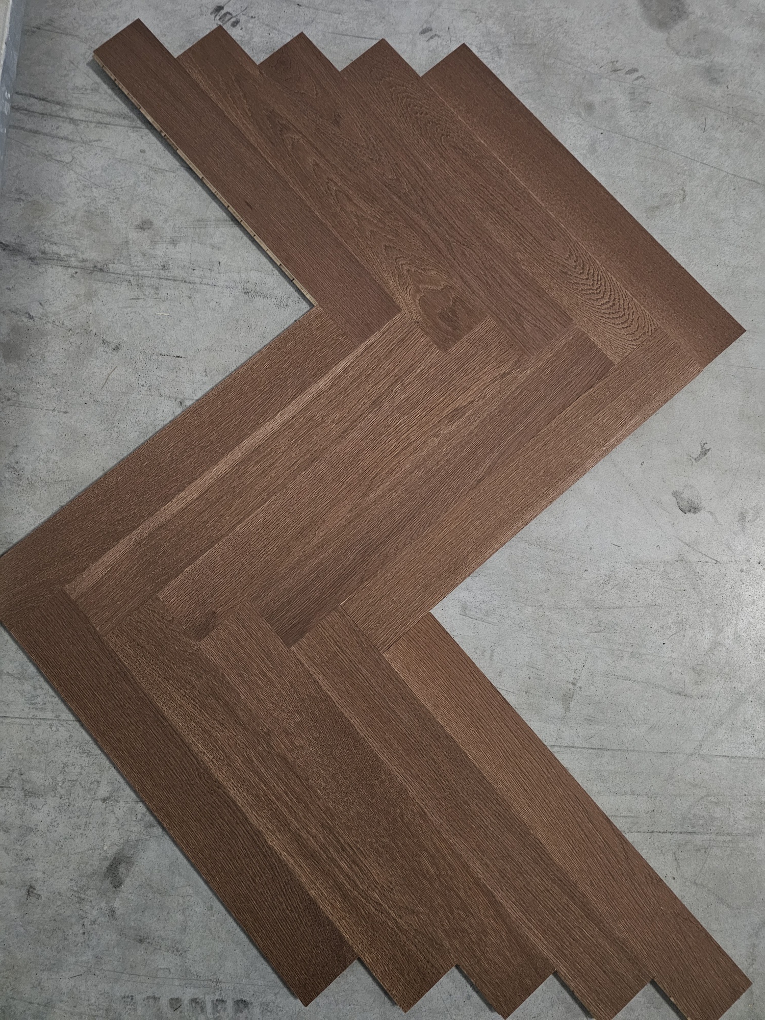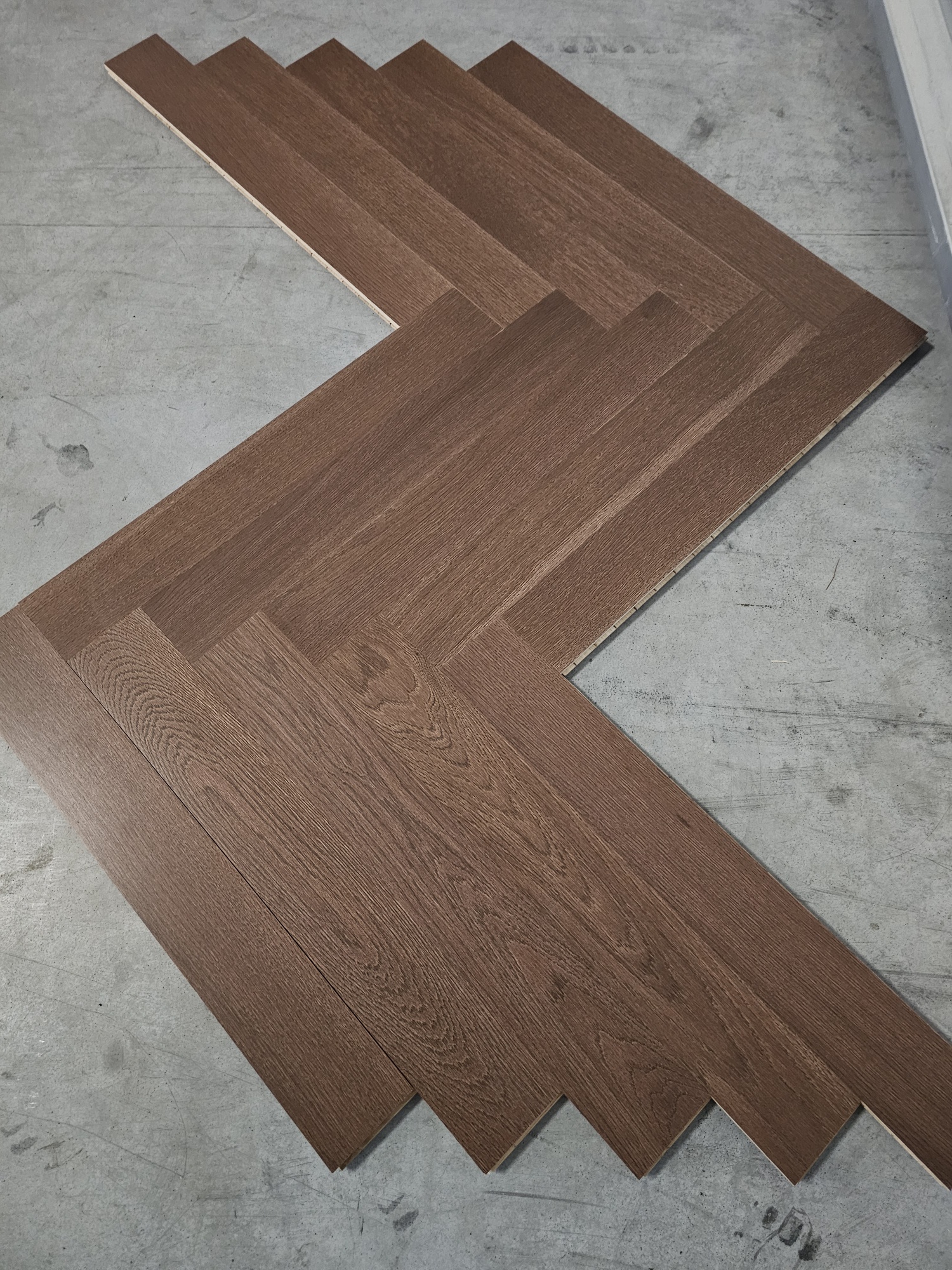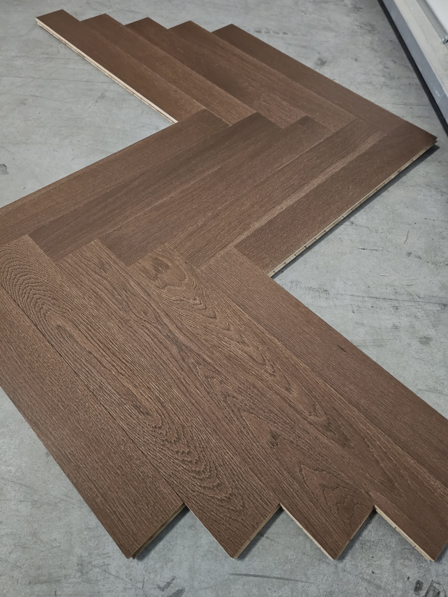 Jodełka klasyczna dąb lakier choco 13x70x490 (warstwa 6mm) 28,5 m2