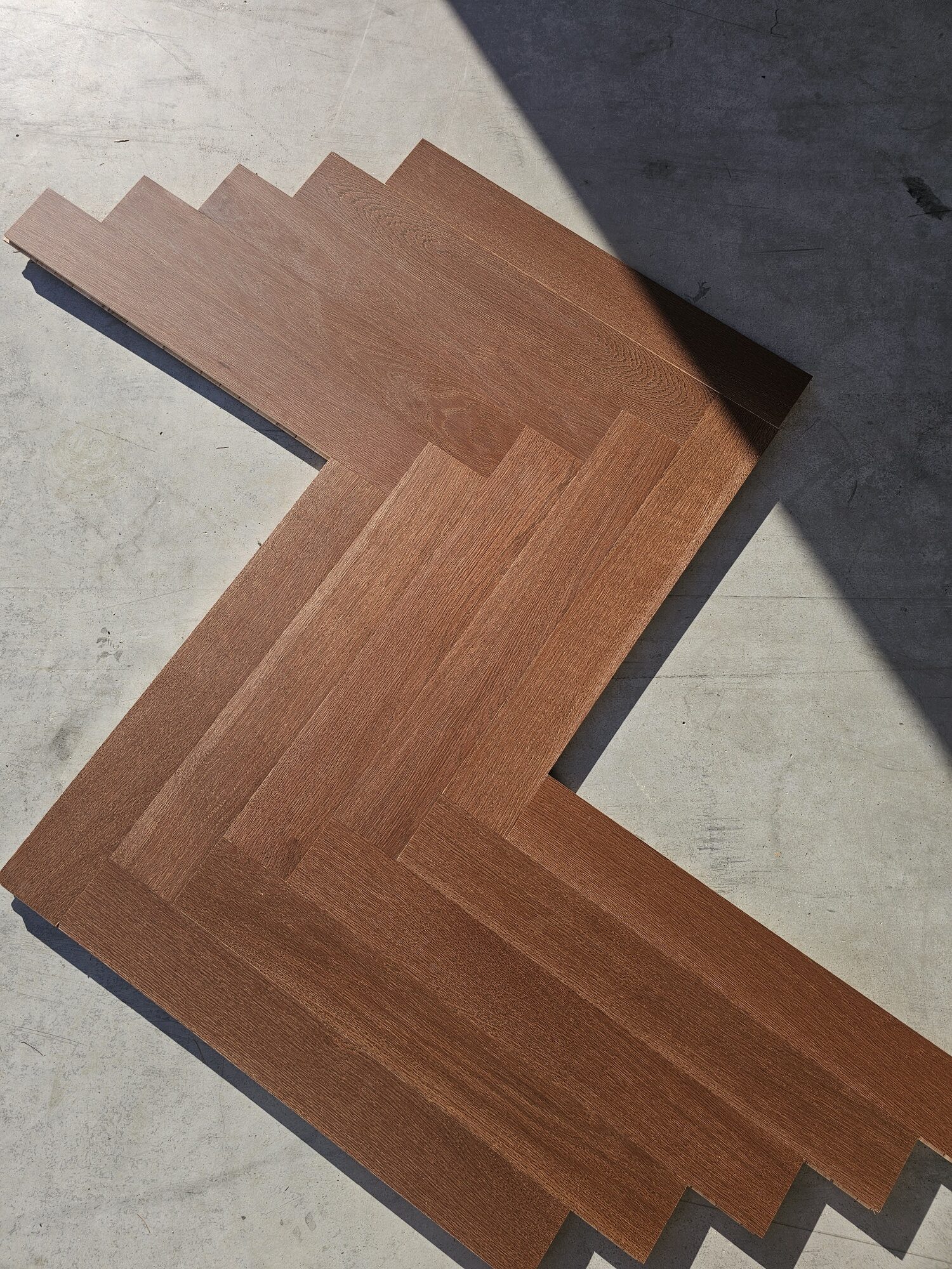Przepiękny parkiet dębowy, lakierowany (lakier choco) (jodełka klasyczna)
