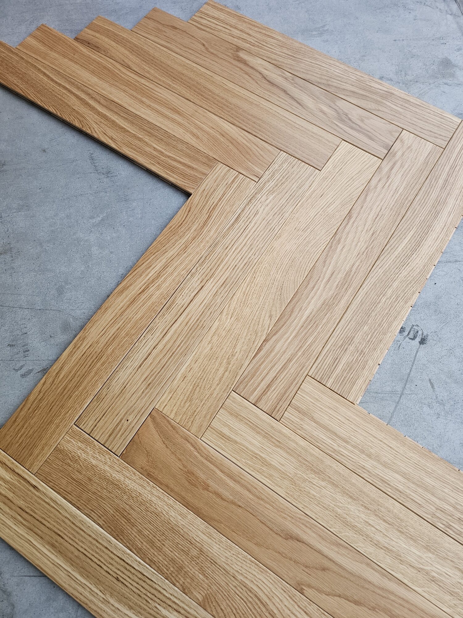 Przepiękny parkiet dębowy, lakierowany (jodełka klasyczna)