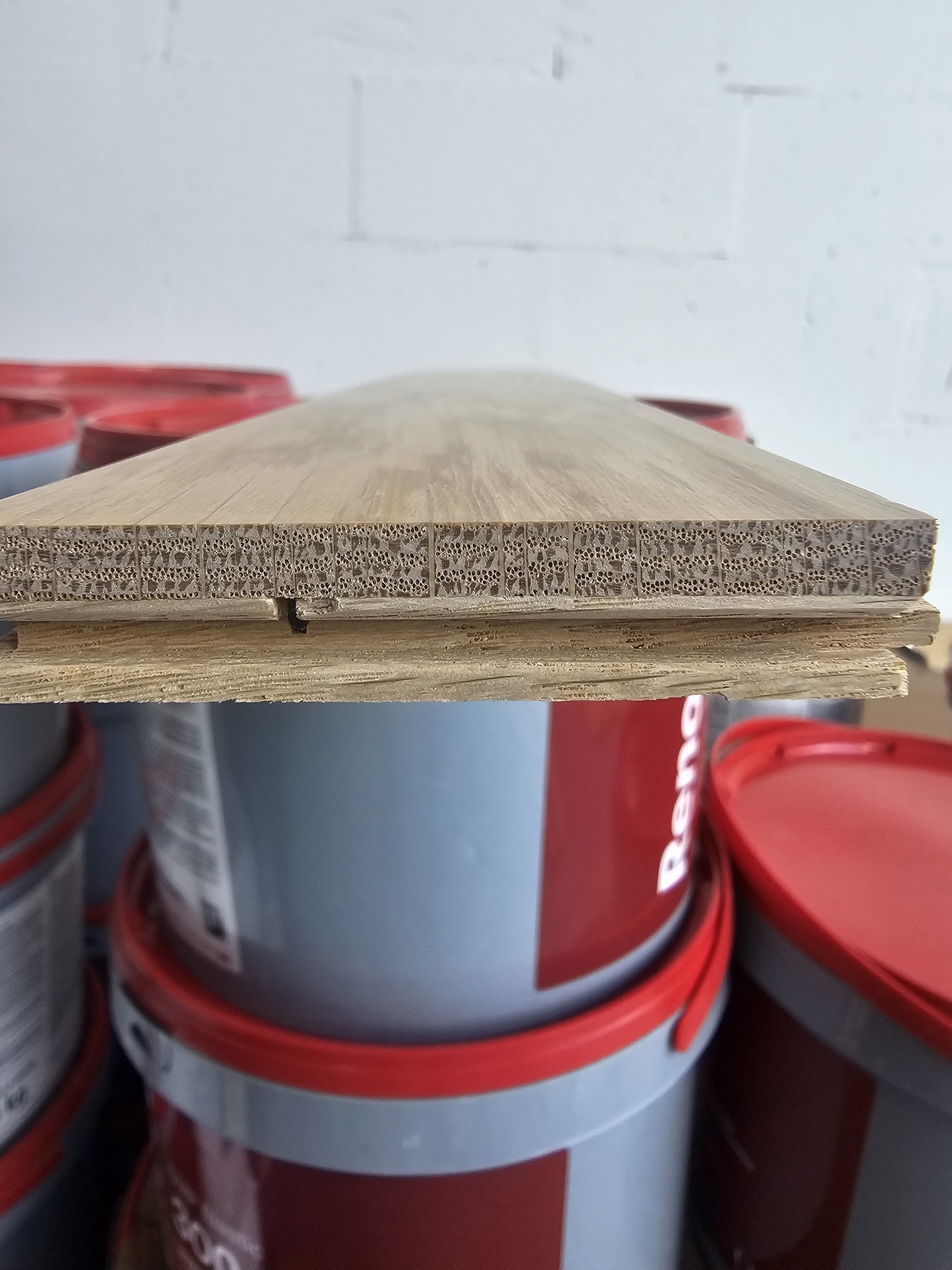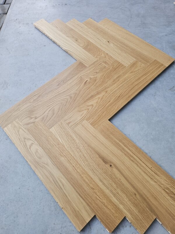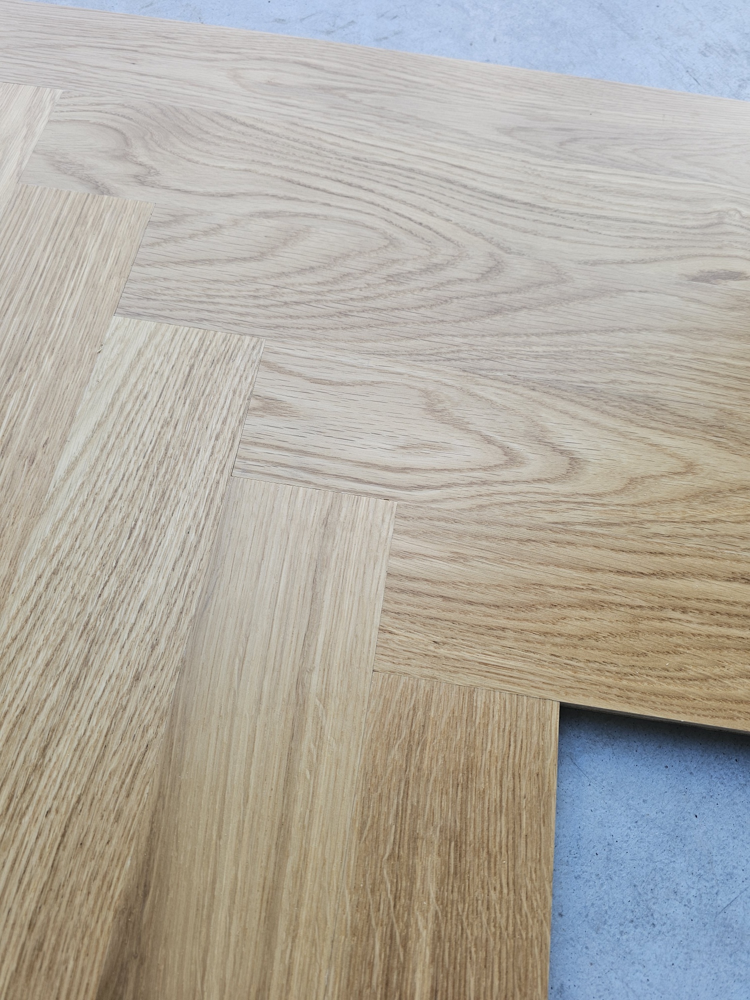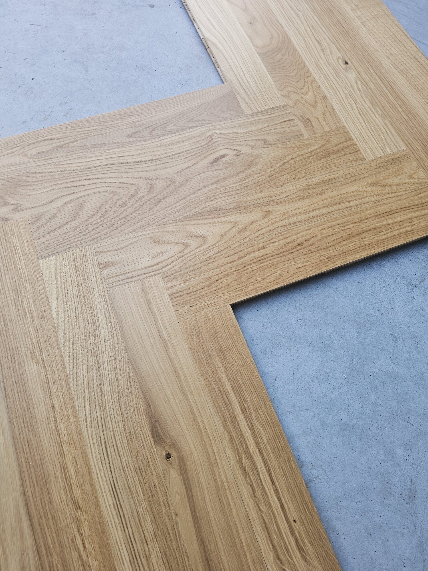 Przedmiotem sprzedaży jest parkiet dębowy (jodełka klasyczna), 2-warstwowy, lakierowany. Produkt dedykowany na ogrzewanie podłogowe.